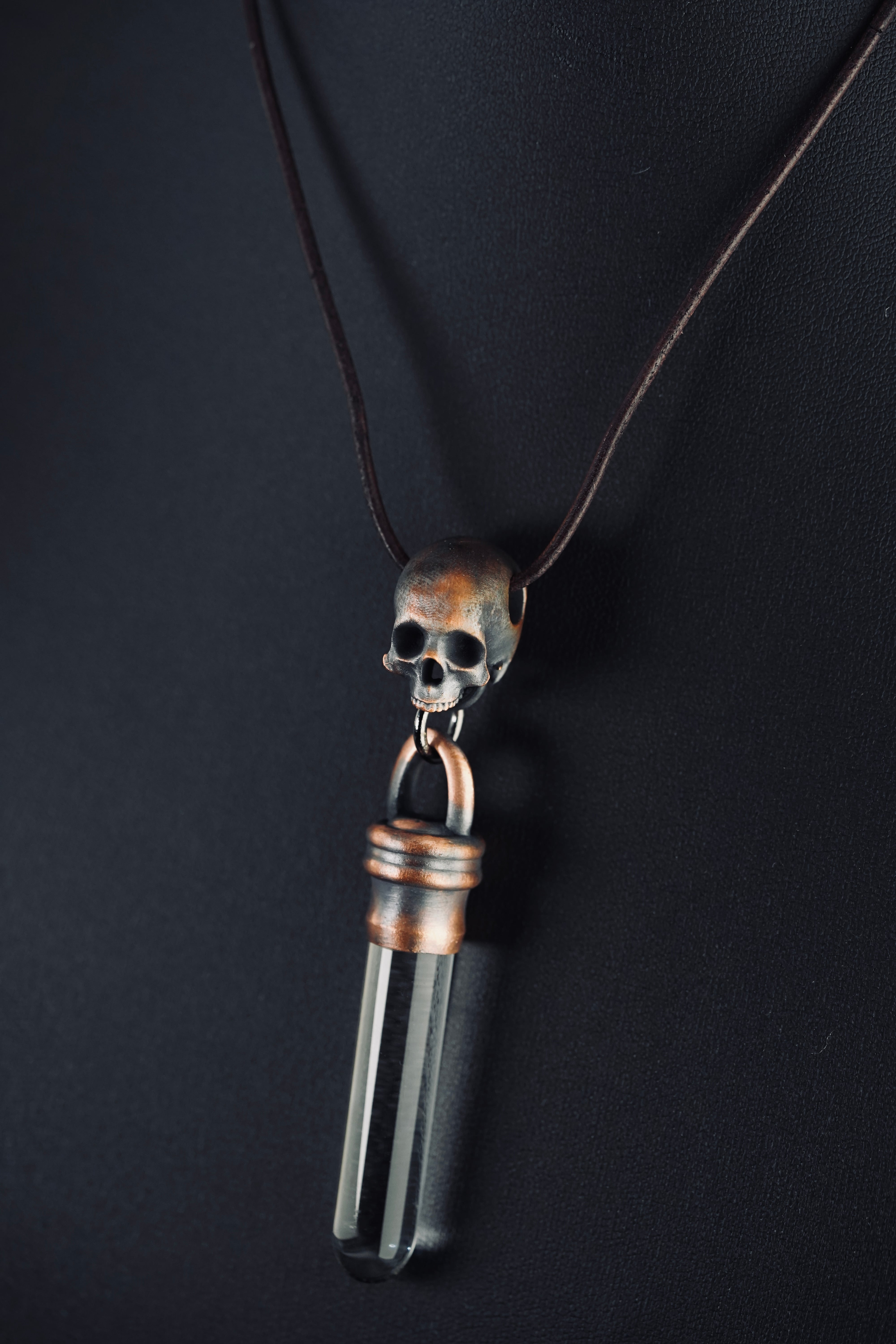 硬質ガラスと銅を巧みに絡み合わせたこのアクセサリーは、光を受けて輝き、その洗練されたデザインがどんなスタイルにも華やかさを添えます。
